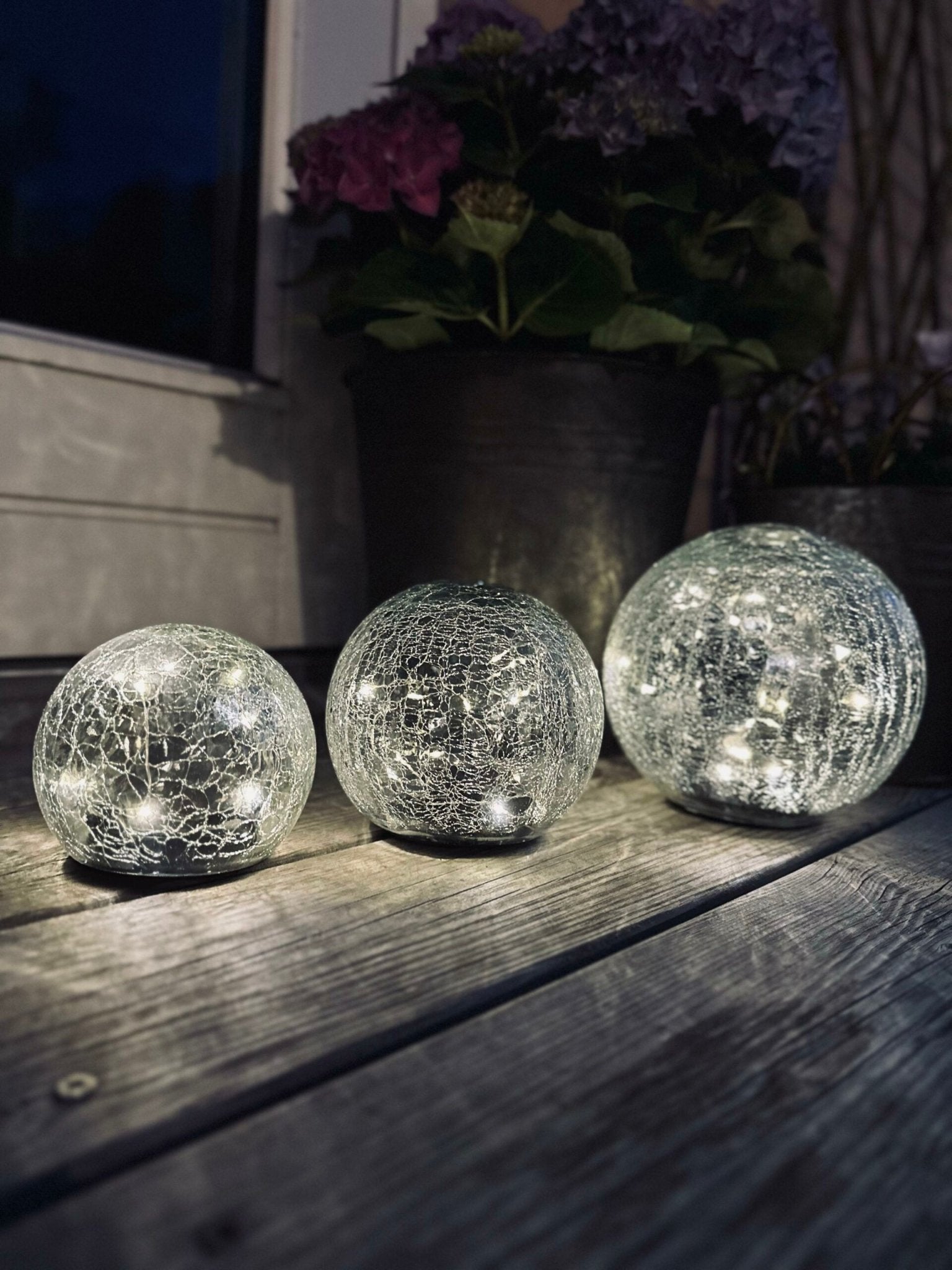 Les boules sont décoratives sur une table de jardin comme bougeoirs ou dans les massifs de fleurs et les pots.