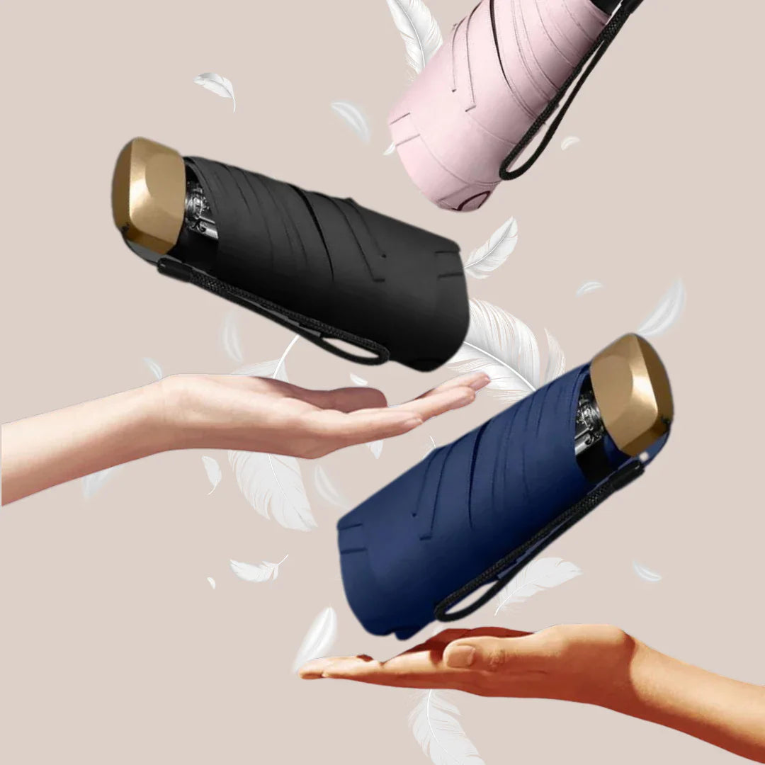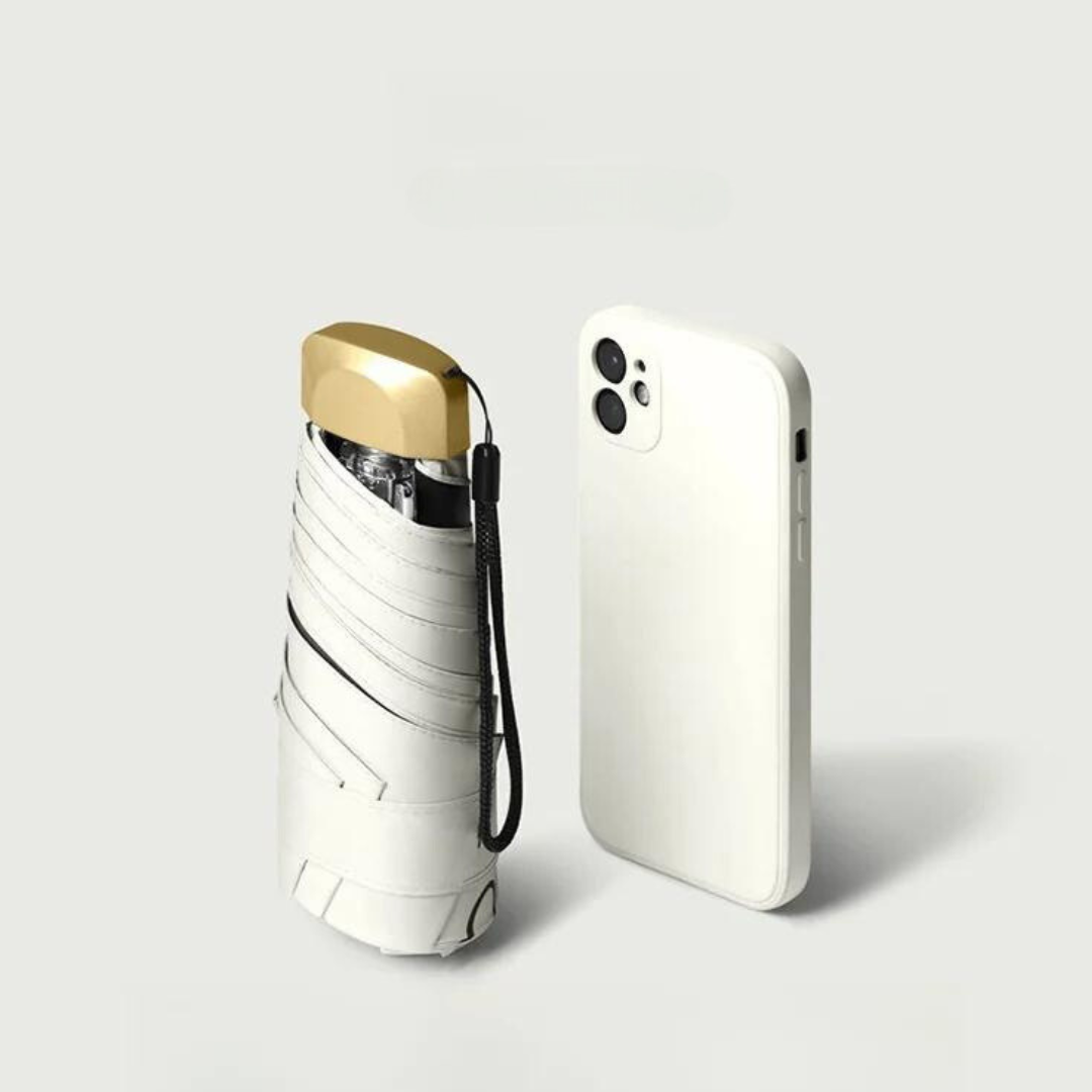 Le minipluie est ultra-compact et se glisse facilement dans n'importe quel sac ou même dans la poche d'une veste. Une fois plié, il a à peu près la taille de votre smartphone.
